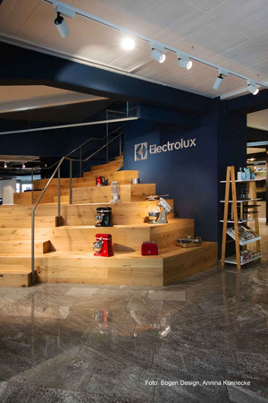 Die zehn Kundencenter von Electrolux sind neu sogenannte „Taste Galleries“, welche Interessentinnen und Interessenten durch Sortiment-Ausstellungen, Events und persönliche Beratungen die Welt des Kochens mit Electrolux-Geräten näherbringen. Die neue Raumausleuchtung lädt zum Verweilen ein und lässt den Besuch der Taste Gallery zu einem unvergesslichen Erlebnis für die Kundinnen und Kunden werden.